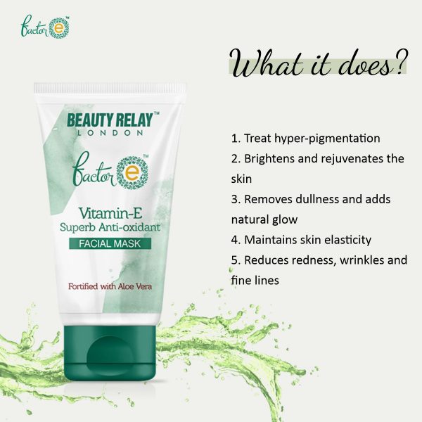 Vitamin E is known for its ability to treat skin hyper pigmentation. Being an anti oxidant, this Factor E face mask accelerates the healing process of the skin and repairs the damage.